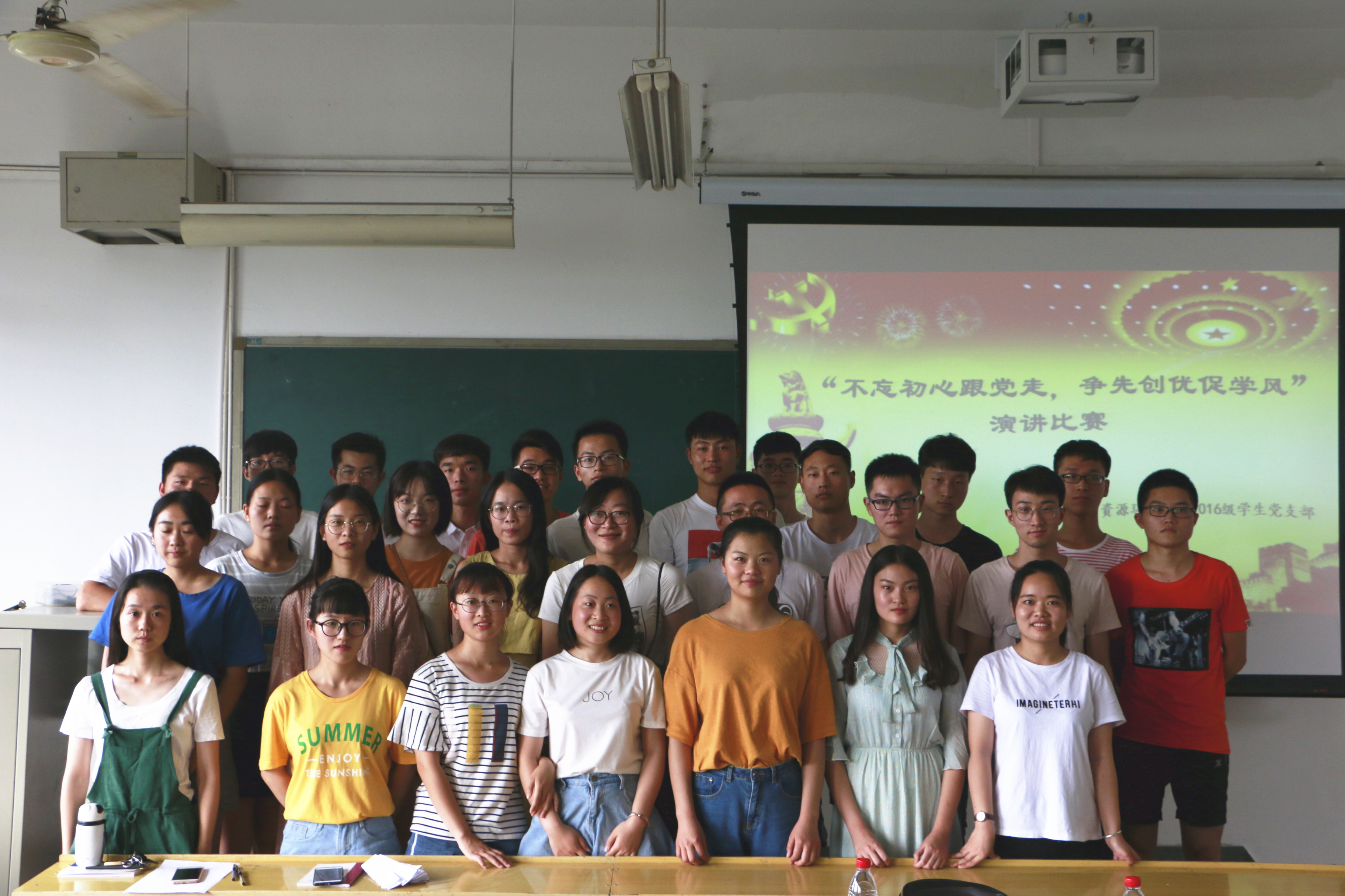 16级学生党支部在资环楼402室举办了特色党日活动——“不忘初心跟党走,争先创优促学风”主题演讲比赛。16级学生党支部全体成员参与了本次活动。