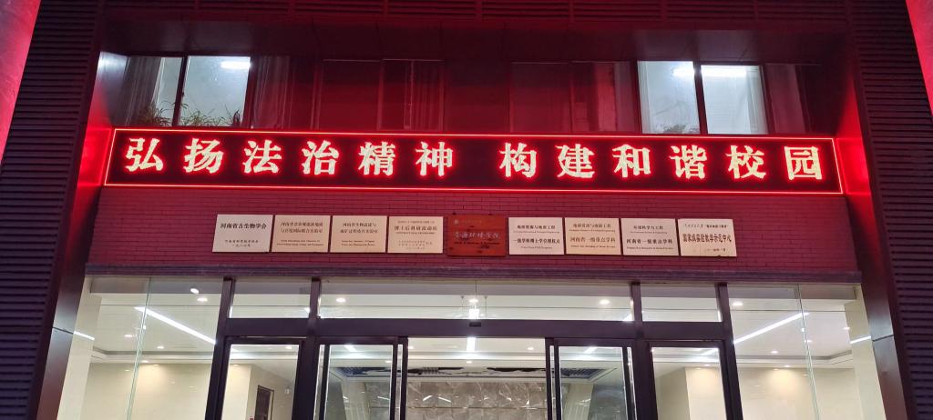 充分利用LED屏,大厅展播电视、图片展板等媒介,从国家安全、消防安全、道路交通安全、防范校园电信诈骗、网络安全等多方面展开宣传并及时推送法治教育内容,营造浓厚的教育氛围,不断增强师生的法治意识。