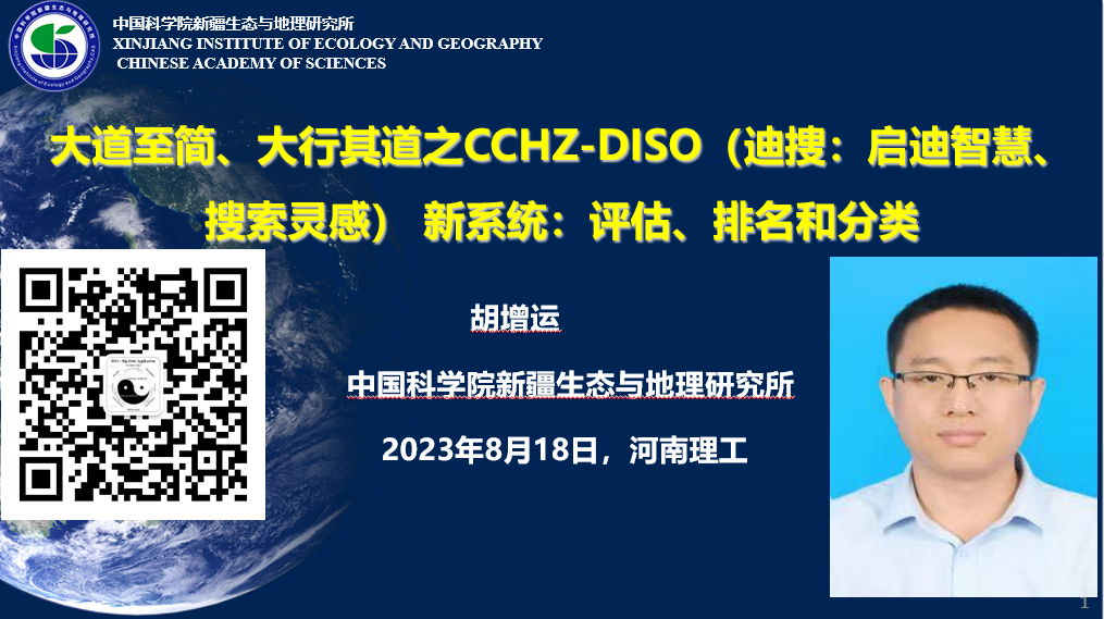 邀请,中国科学院新疆生态与地理研究所的胡增运研究员在国家重点实验室901报告厅作了《大道至简之----CCHZ-DISO评估系统》的学术报告,抖音风