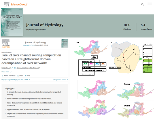 教师刘永和副教授与美国得州大学奥斯汀分校杰克逊地学院的杨宗良教授、北京大学地球空间科学学院的林佩蓉助理教授合作,以共同作者在国际水文学顶刊《水文学杂志》(《Journal of Hydrology》)发表题为《基于一种河网直接分块的并行化河道汇流计算》(《Parallel river channel routing computation based on a straightforward domain decomposition of river networks》)的研究成果,这是抖音风