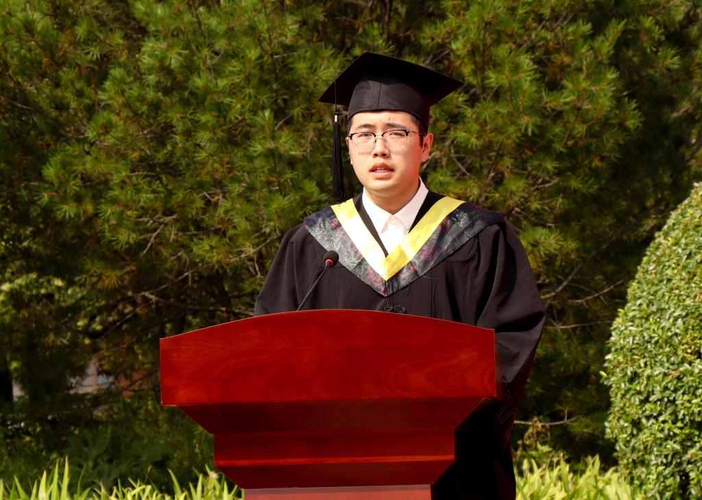 教师代表李云波在发言中激励全体毕业生,持续涵养家国情怀、投身强国伟业,厚植奋斗基因、不负学院期盼,严守人生底线,砥砺卓越品格,不断创造精彩人生。本科毕业生代表吴辰帅发言,真诚表达了对学院和师长的感恩,愿以更加奋斗的姿态,踔厉奋发,勇毅前行,不负美好新时代。