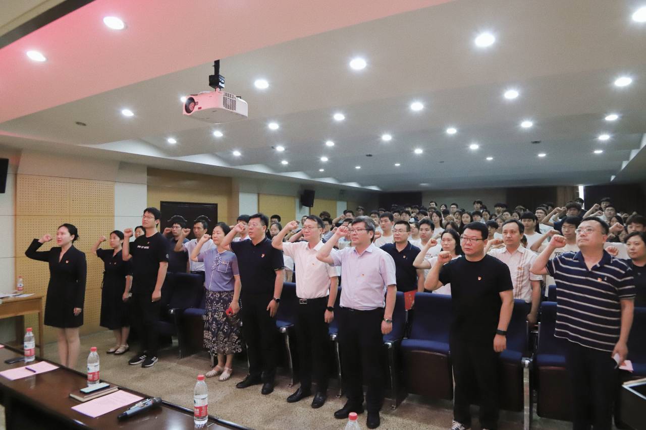 在资环楼影像厅举行“七一”表彰大会暨新党员入党宣誓活动,学院领导班子成员、党支部书记、优秀党员代表、新发展党员和积极分子、发展对象代表参加会议。会议由党委副书记孙付伟主持。