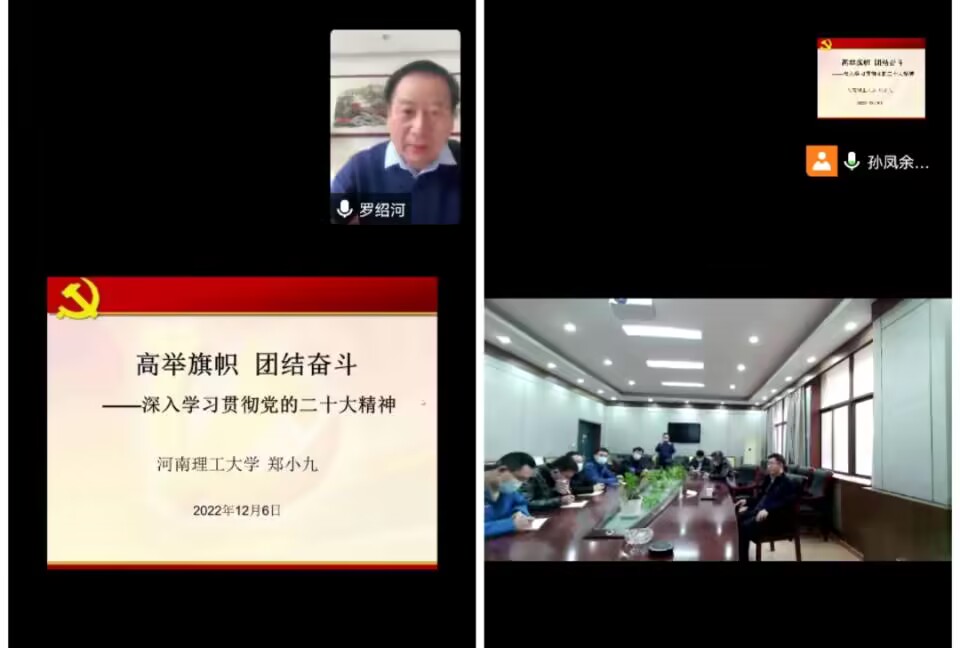 采取线上线下相结合的方式举办学习贯彻党的二十大精神专题报告会。学校二十大精神宣讲团专家、马克思主义学院院长郑小九教授以《高举旗帜,团结奋斗——深入学习贯彻党的二十大精神》为题作专题报告。该院党委书记罗绍河主持报告会。