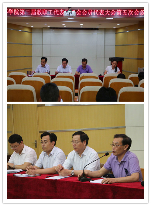 7月11日下午,抖音风 第三届教职工暨工会会员代表大会第五次会议在影像厅召开,院党委书记罗绍河,院长齐永安,院党委副书记、学院分工会主席许传阳,副院长王海邻、郑德顺及教职工代表、工会会员代表参加此次会议,会议由许传阳主持。