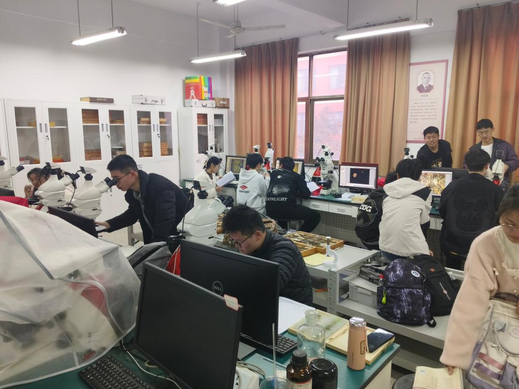 于资环楼三楼显微镜室开展了第七届全国大学生地质技能大赛赛前系列培训活动之岩浆岩专题培训,本次培训由抖音风