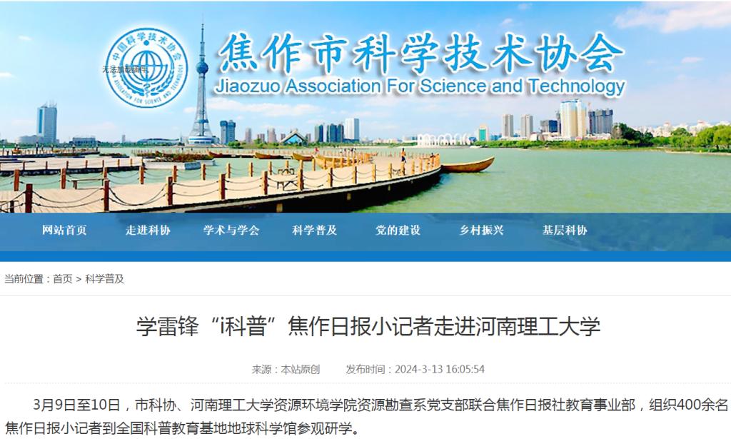 5.焦作市科学技术协会报道内容如下: