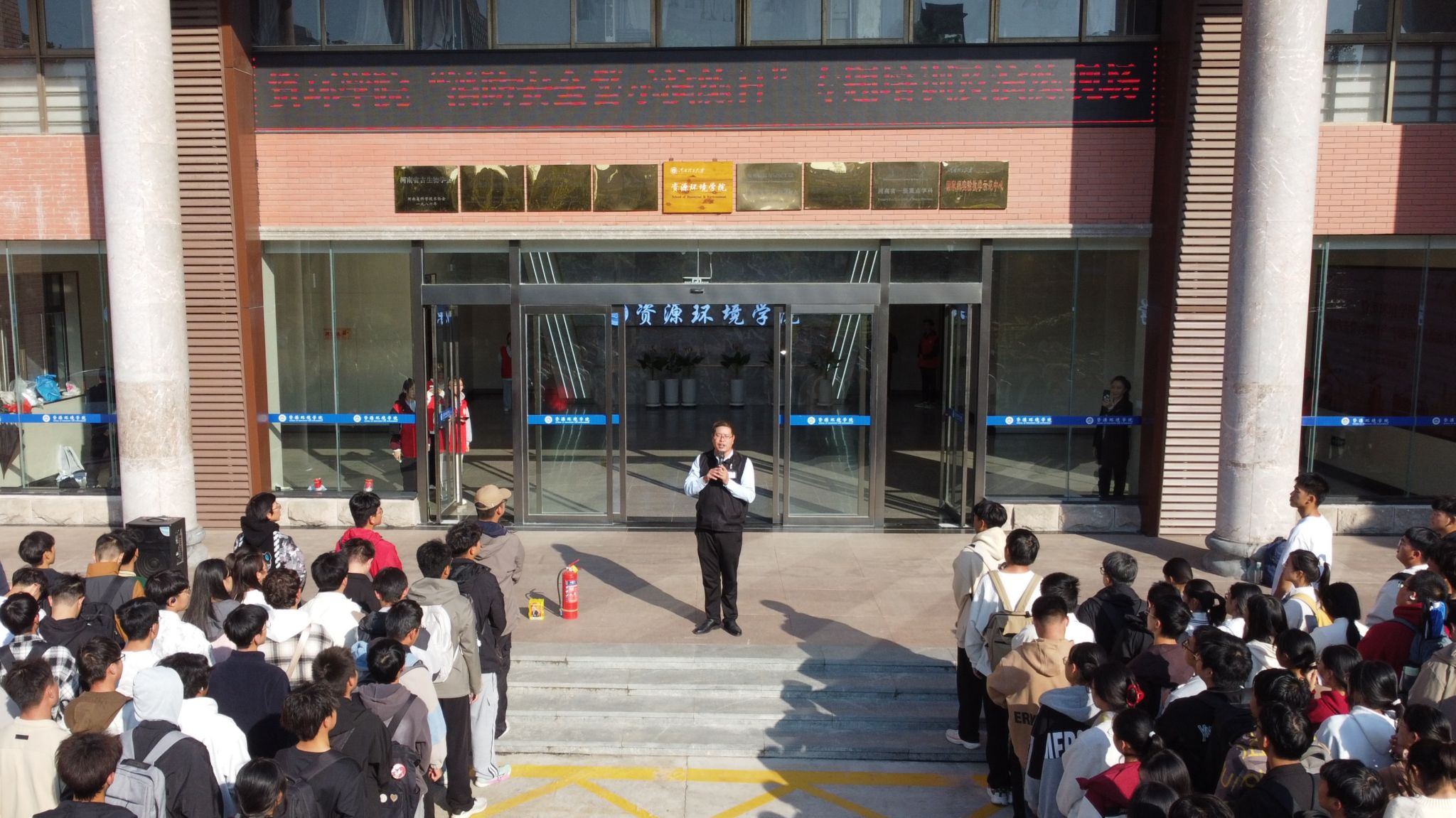 联合校保卫处、省消防协会在学院楼开展消防宣传教育和应急疏散演练,抖音风