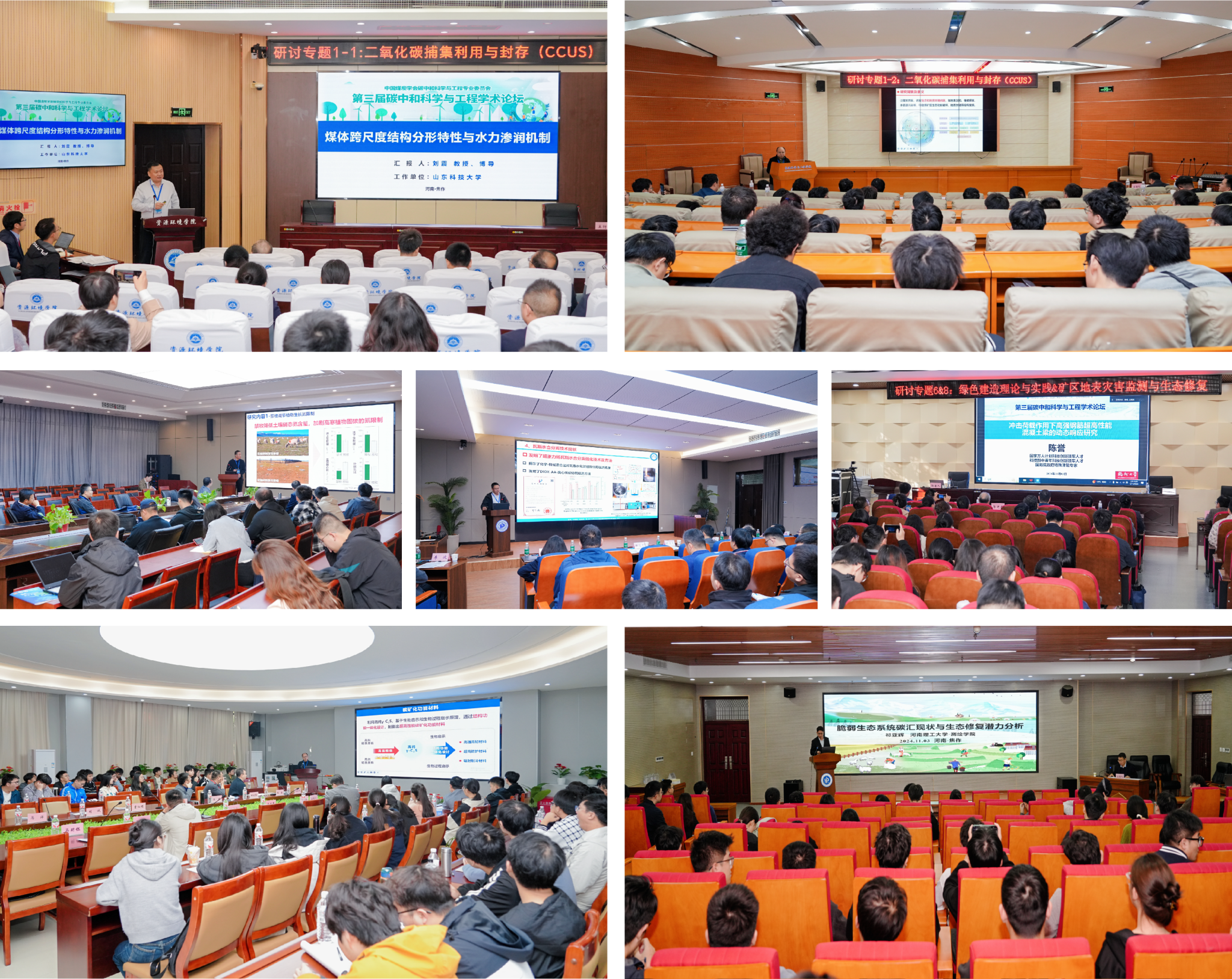 分论坛交流环节,共计专题报告170个。与会专家学者围绕“二氧化碳捕集利用与封存(CCUS)”“地球碳循环与碳中和技术”“煤系三气绿色开发与利用”“煤炭绿色低碳与智能开采”“煤炭清洁利用与储能技术”“煤基固废资源化低碳利用”“绿色建造理论与实践”“矿区地表灾害监测与生态修复”“青年科学家论坛”9个专题进行了深入的探讨与交流。