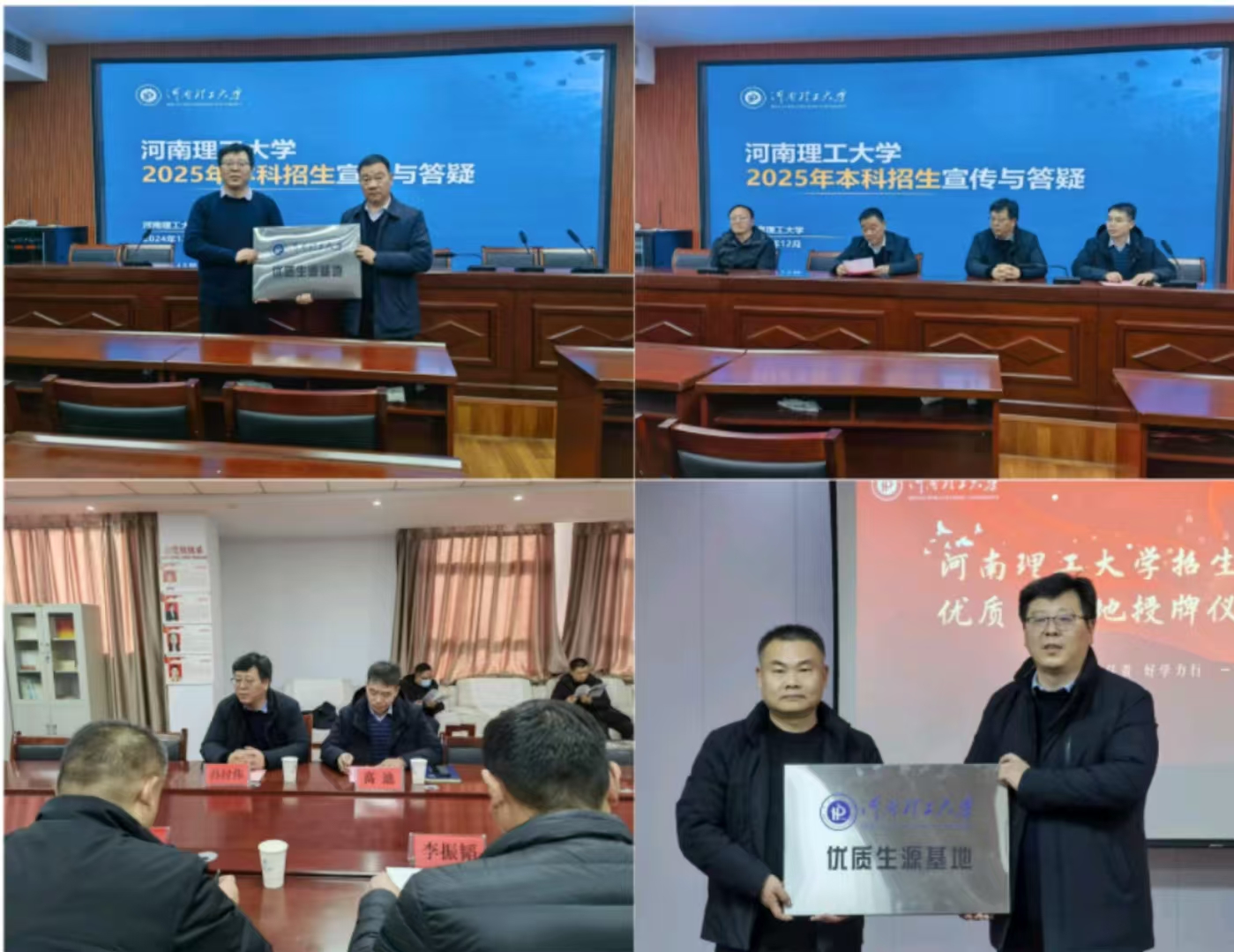 领导带队赴周口市商水县第一高级中学和商丘市柘城县第二高级中学开展招生宣传和“优质生源基地”授牌工作。