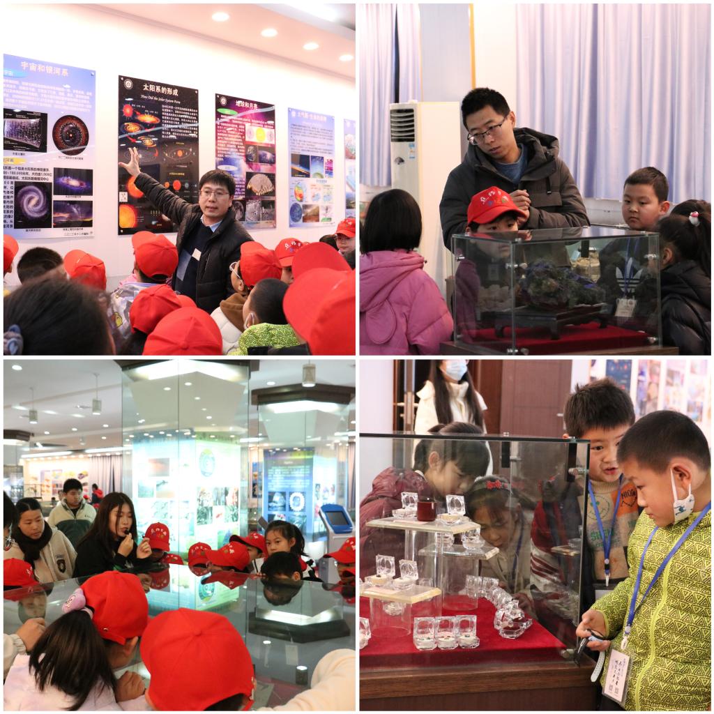 小记者们手持队旗,在工作人员的精心组织下分批有序进入展馆。志愿者们以弘扬新时代雷锋精神和“科普十条”精神为宗旨,以地球科学馆展厅大量天然实物标本、模型、图片、简明图表为依托,对地球演化、痕迹化石、矿物与矿产资源3个部分的地球科学馆展区进行了详细讲解,孩子们听得津津有味,不时发出惊叹和提问,现场氛围热烈而活跃。