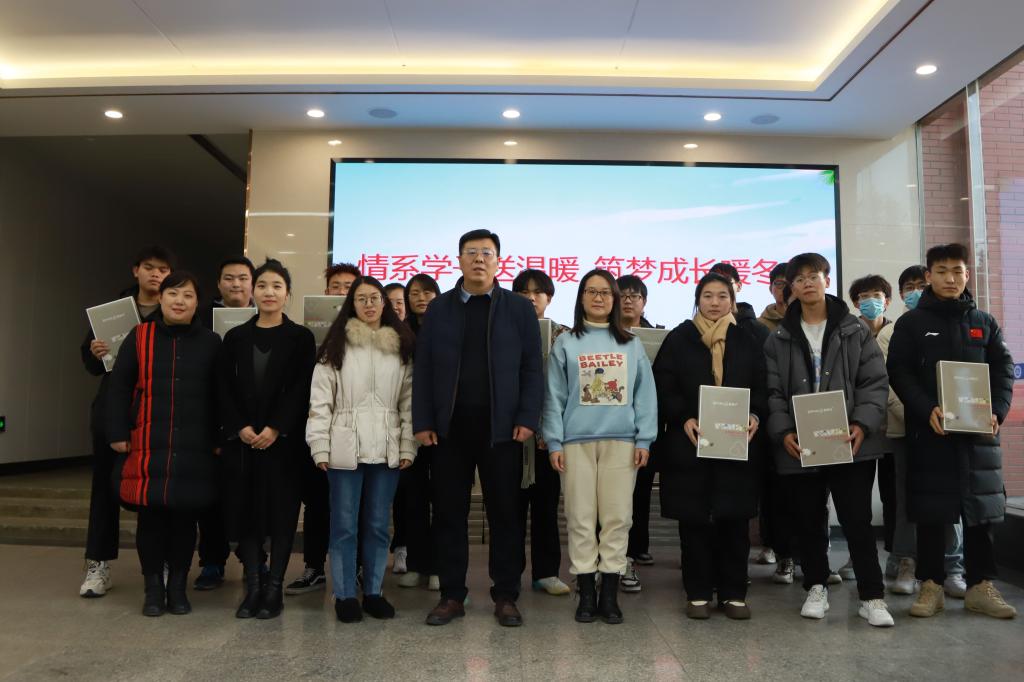 在学院大厅为家庭困难学生发放保暖过冬衣物,院党委副书记孙付伟及全体学工人员参加了发放仪式。