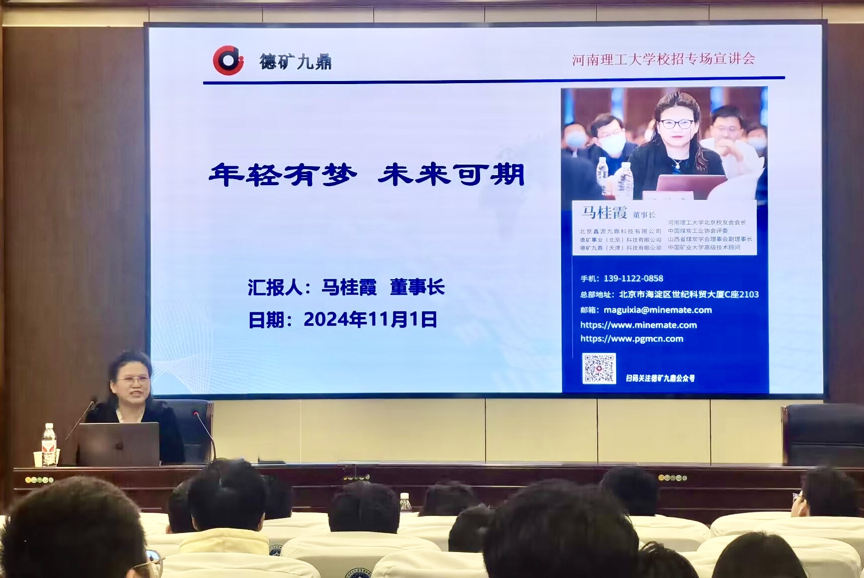 地勘系82级杰出校友、德矿九鼎(天津)科技有限公司董事长马桂霞应邀在资环楼第Ⅰ学术报告厅为2025届毕业生作了题为《年轻有梦 未来可期》的个人成长报告会。报告会由抖音风