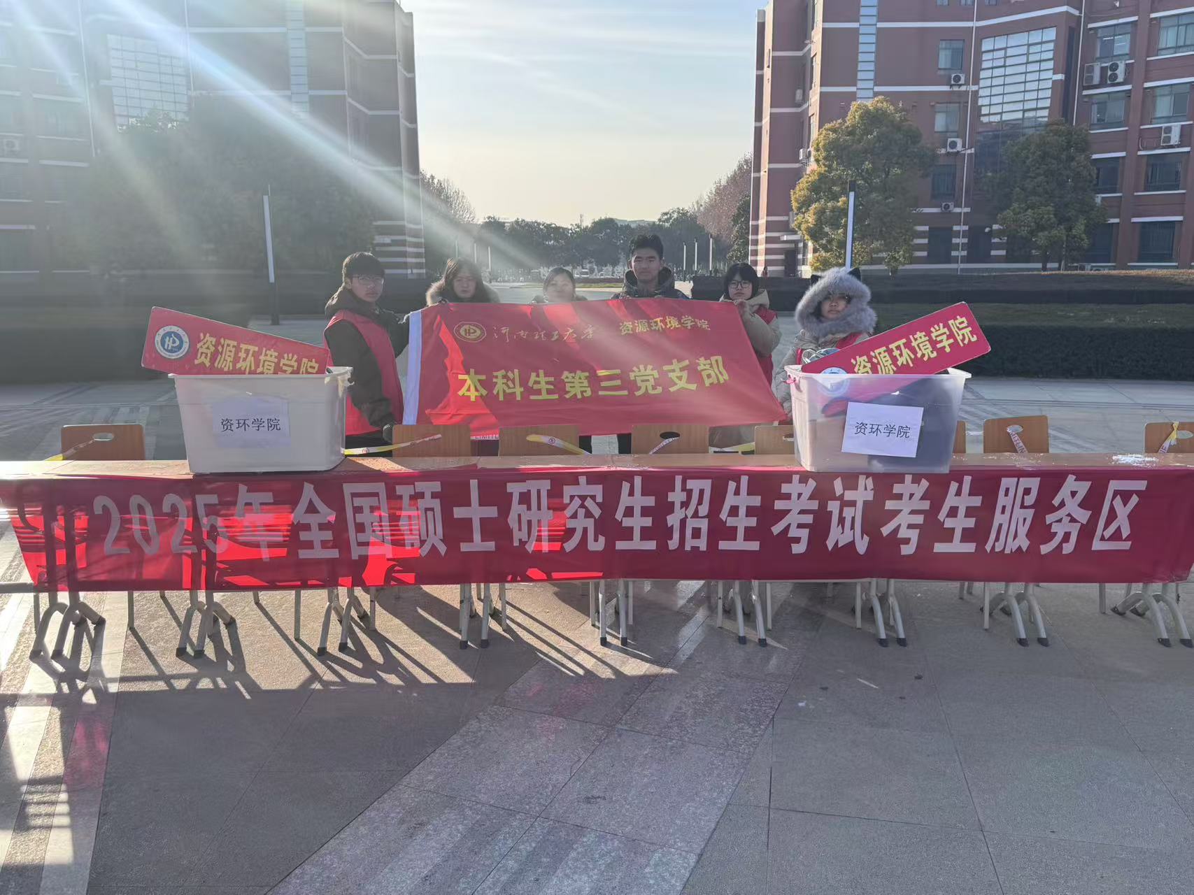 本科生第三党支部在2024年12月21日至12月22日全国研究生入学考试期间,开展了“研途有爱,温暖相伴”考研志愿服务活动。