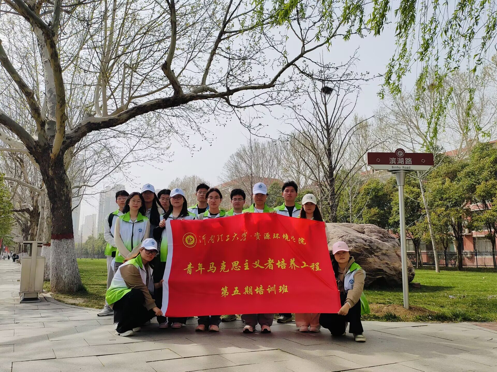 青年马克思主义者培养工程培训班(青马班)学员积极响应国家生态文明建设的号召,在馨月湖畔开展“青春护校”校园生态文明实践活动。