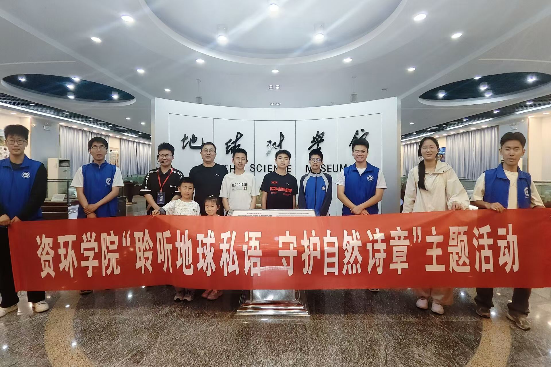 当日15时许,活动在地球科学馆正式启动。地球科学馆建自1983年,是集教学、科研、科普为一体的地球科学园区。本馆包括地球演化、痕迹化石、矿物矿产资源近三百件展品,其中生物痕迹化石标本是国内类型最全、数量最多、保存最完整的精品。在讲解员的带领下,同学们依次参观馆内展区,从地质变迁的岩石标本到生物演化的珍贵化石,从矿物资源的多样展示到生态系统的互动模型,直观感受地球46亿年的沧桑变迁与生命奇迹。活动结束后,同学们纷纷表示,本次活动使自己深刻认识到保护地球的重要性,今后将从身边小事做起,践行绿色生活理念,用实际行动守护地球家园,让天更蓝、水更清、山更绿。