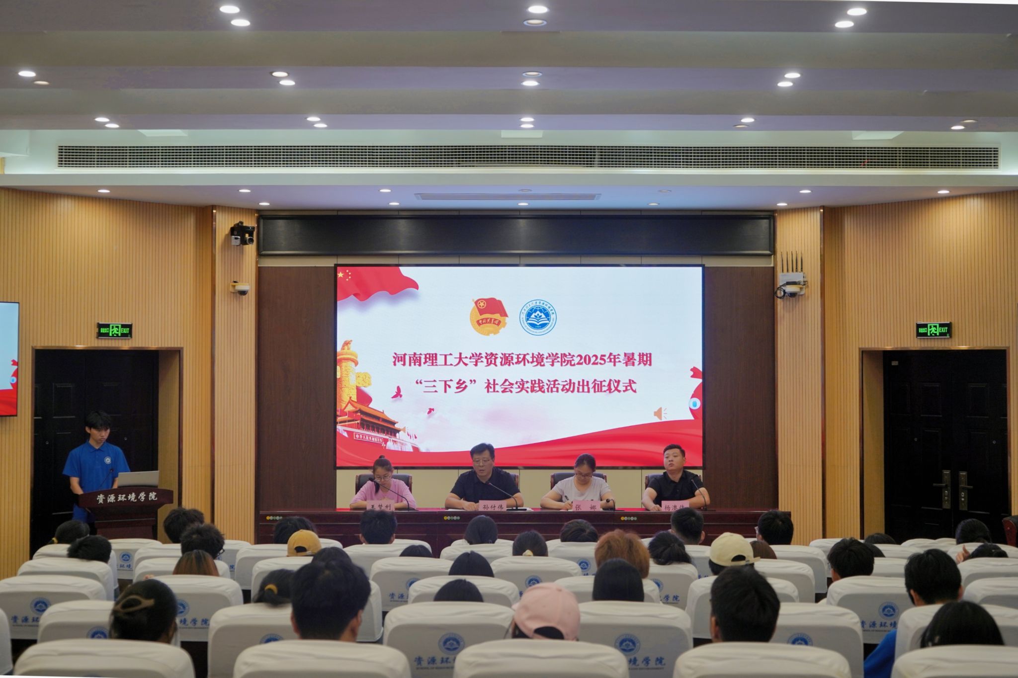 于7月8日下午在资环楼第Ⅰ学术报告厅举行2025年暑期“三下乡”社会实践活动出征仪式。院党委副书记孙付伟、学工办主任张娜、团委副书记王梦利、24级辅导员杨澳伟出席仪式,全体实践队员及指导老师共同见证征程开启。