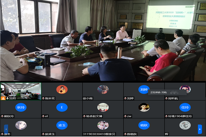 采取线上线下混合模式举办了“互联网+”大学生创新创业大赛的指导讲座,邀请到曾获得“互联网+”大学生创新创业国家级奖项的计算机学院任建吉老师担任讲师,讲座由该院副院长郑德顺主持,各系(室)主任和二十余名教师线下参会,近二百名学生线上聆听。